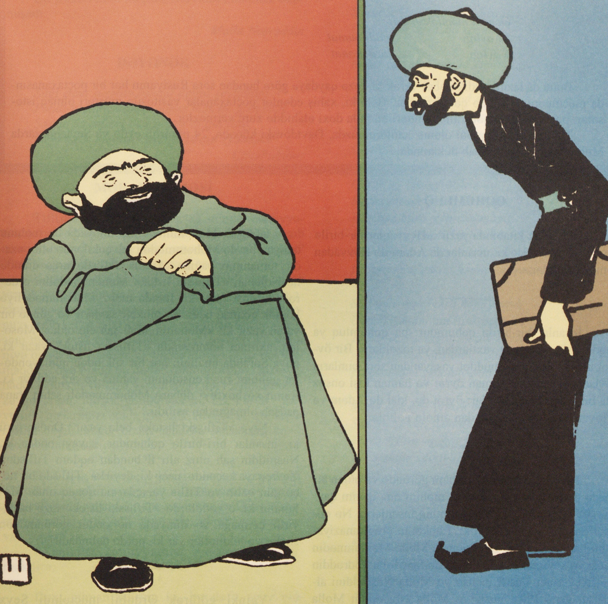 Mollas Conversing Post navigation Previous ItemNext Item Title Mollas Conversing Description A tall, skinny molla holding a book talks to a short, fat molla. Collection 1911 Publication Reference No. 41 (1911 November 20) Front page